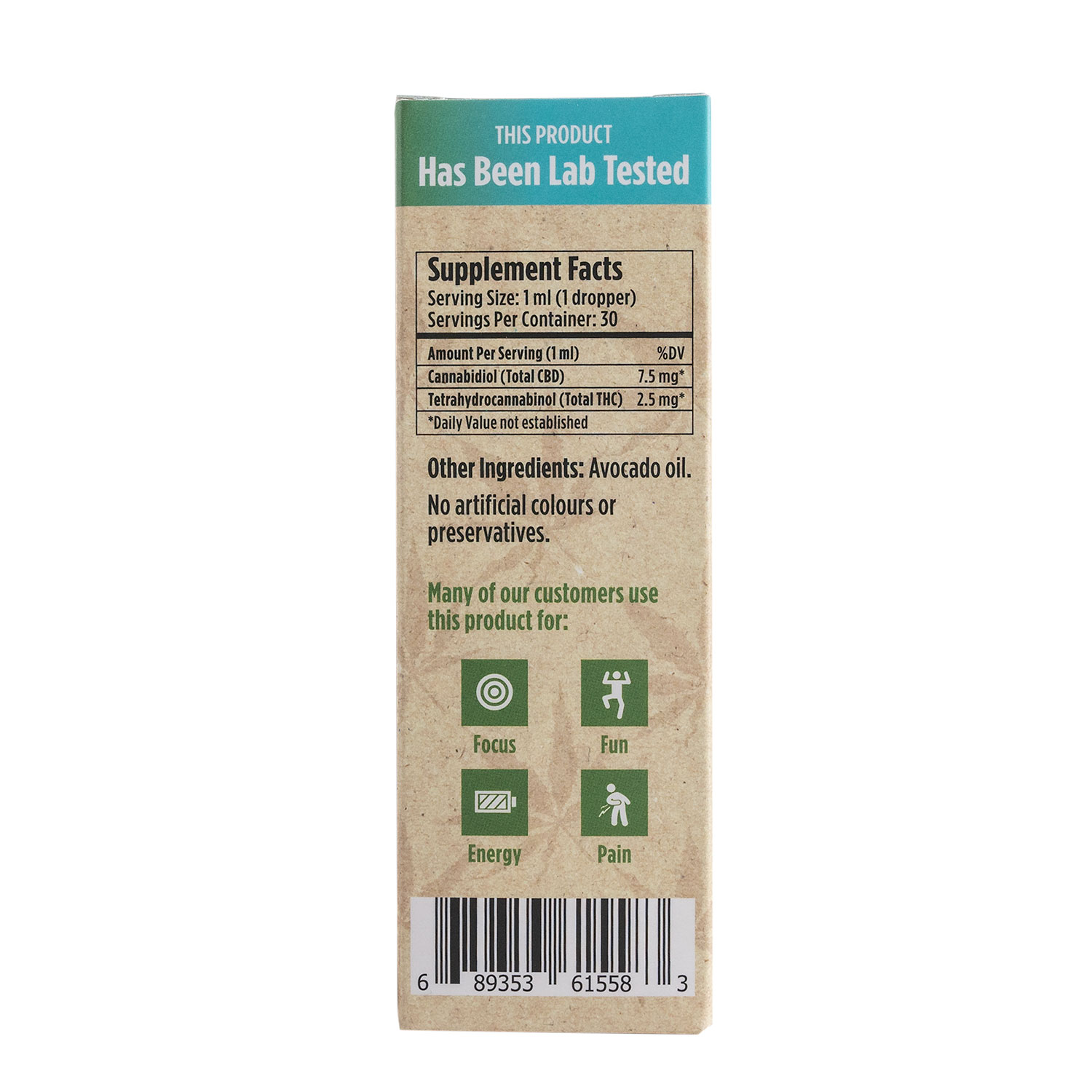 Serving size:  (7.5 mg CBD + 2.5 mg THC) per Full Dropper (1 mL)