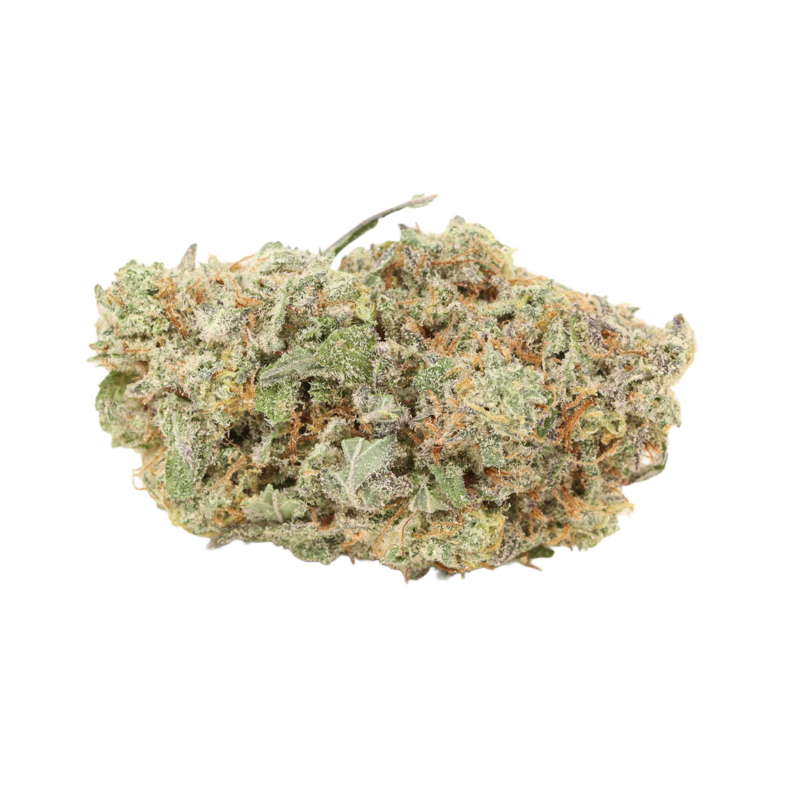 Ideal for more experienced smokers, Atomic Bomb strain comes in with an average of 24% THC potency. Her flower is very fluffy and dark in colour, yet is offset by lighter amber pistils and a thick layer of oversized clear trichomes. This strain should come with a warning label when it comes to her flavours and smells, as a very strong mixture of fuel, berries, and menthol will overtake you. Most describe it as a chemical type of fragrance that will leave you coughing long after you exhale.