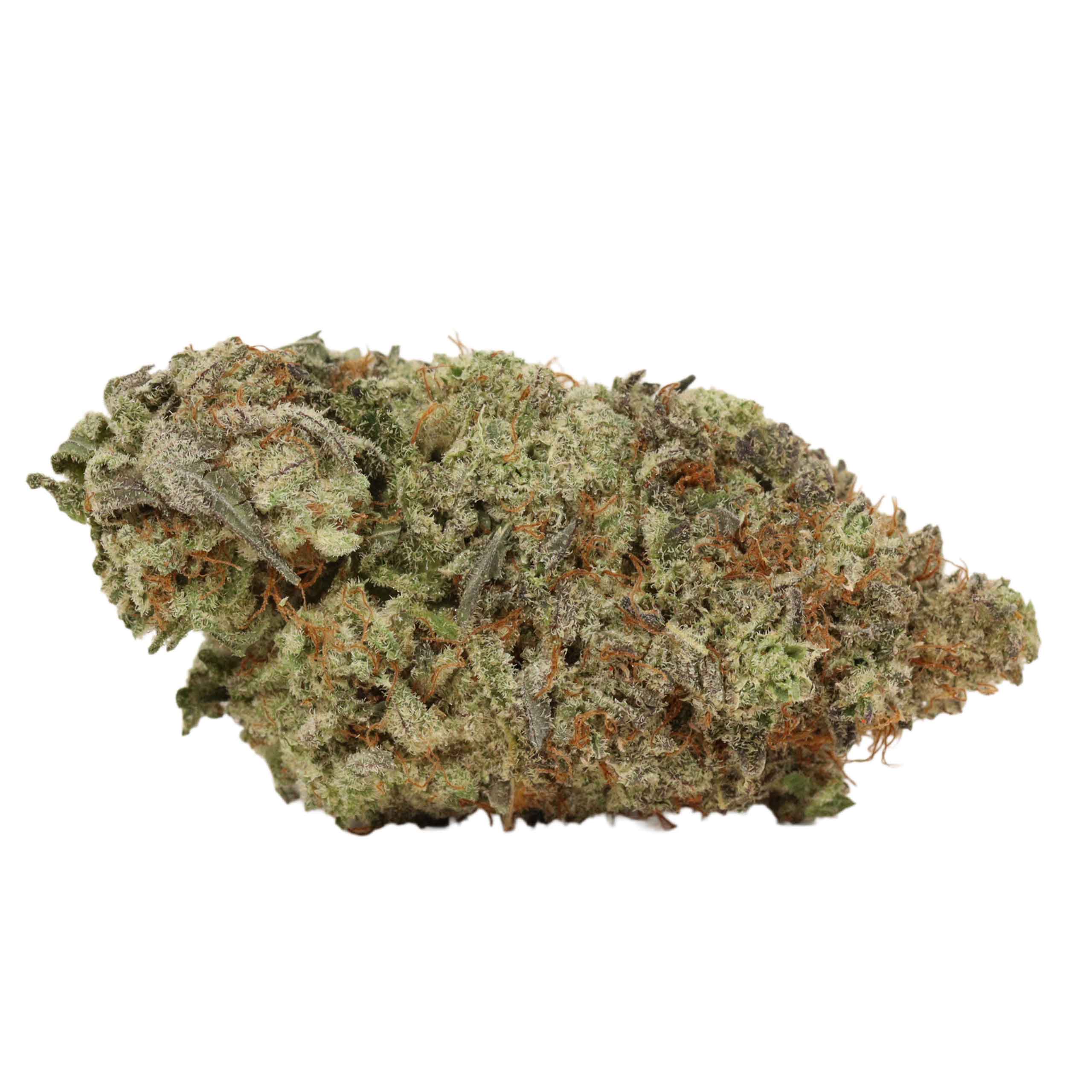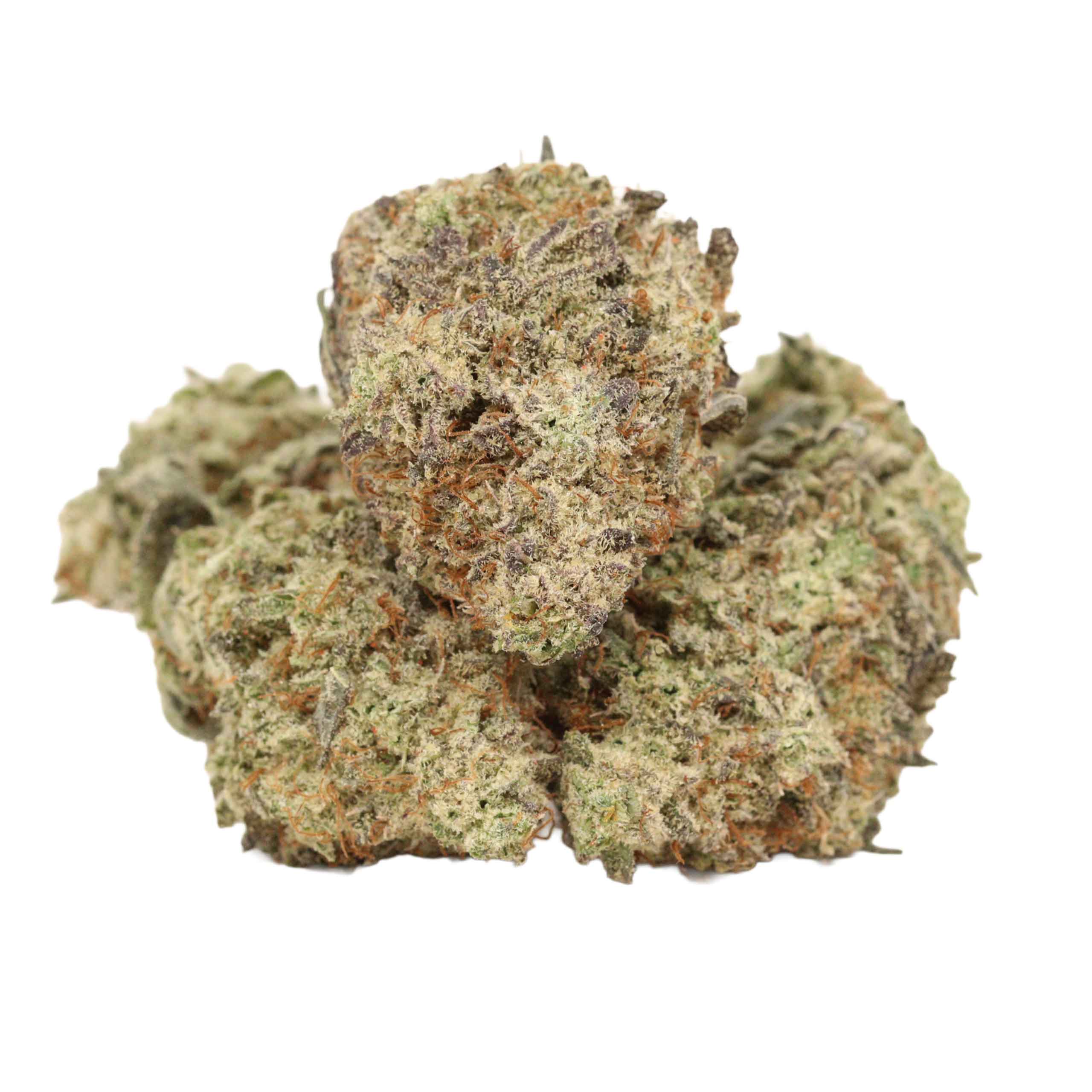 The bag appeal is undeniable. You’ll find oversized, forest-green nugs accented by deep purple leaves, all woven together with thick red-orange hairs. A heavy coat of chunky, dark purple crystal trichomes signals the power hidden within every bud.